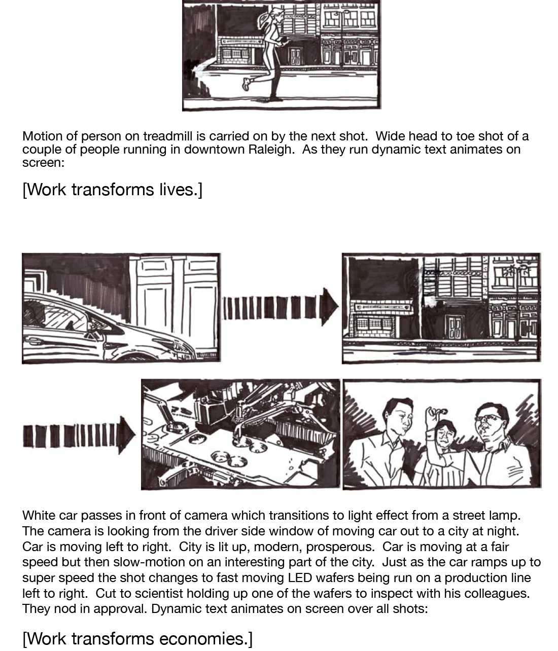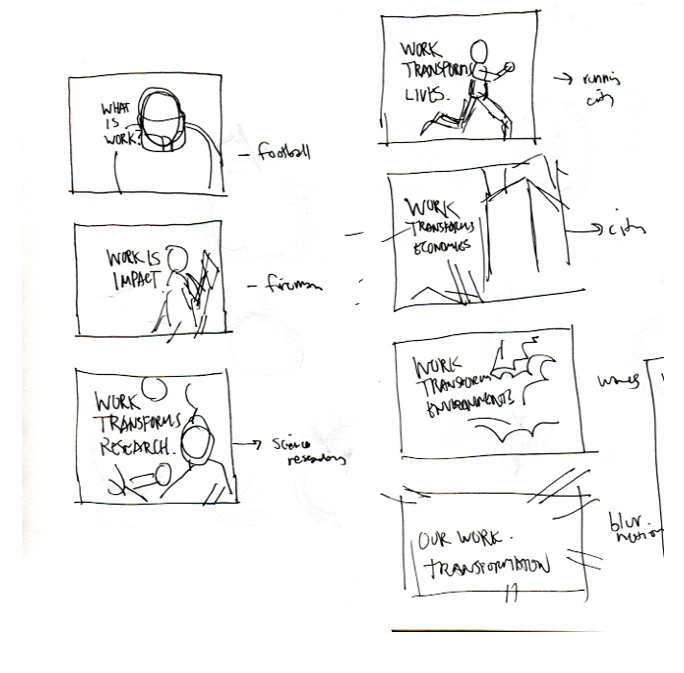 Very simple exploratory sketches for how the spot should pace and present the messaging.
